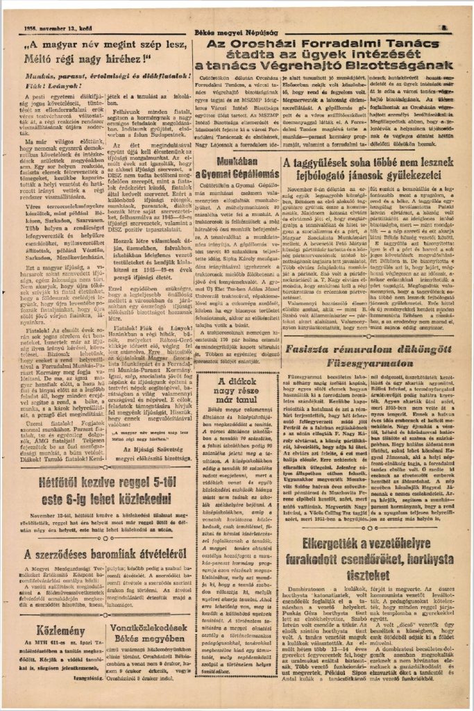 Forradalom árnyékában – 1956 ősz Orosházán