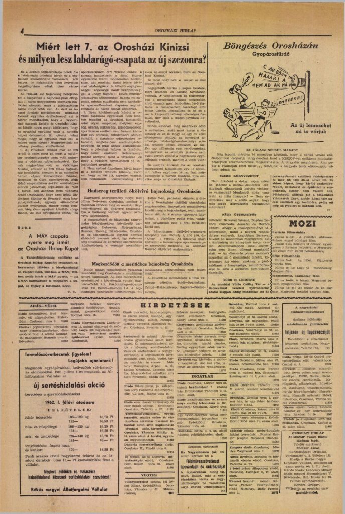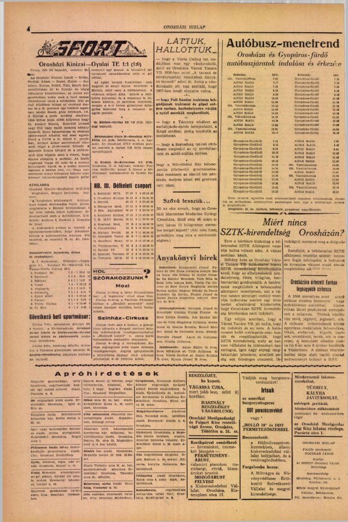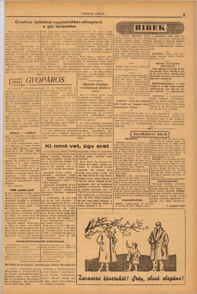 1966-ra Orosháza túl volt a nehezén. A forradalom árnyai még ott voltak az emlékezetben, de az emberek már építettek, tanultak, nevetni mertek. A város arculata átalakult: a kertvárosias Szőlővárosrész, az ipari lehetőségek, Gyopáros megújulása, a közösségi kezdeményezések mind azt jelezték: a jövő elkezdődött.